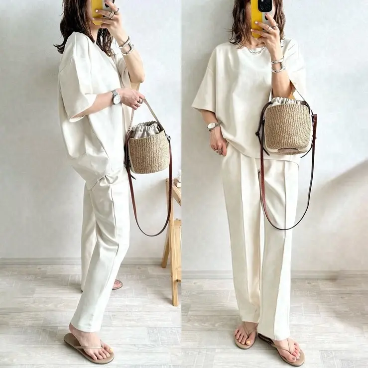 サイズ(cm) | トップス丈 | 肩幅 | 袖丈 | バスト | パンツ丈 | パンツウエスト(ゴムあり) | パンツヒップ |